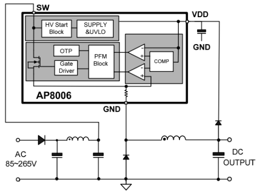 AP8006廣泛應用于各種小功率非隔離開關電源領域,如: