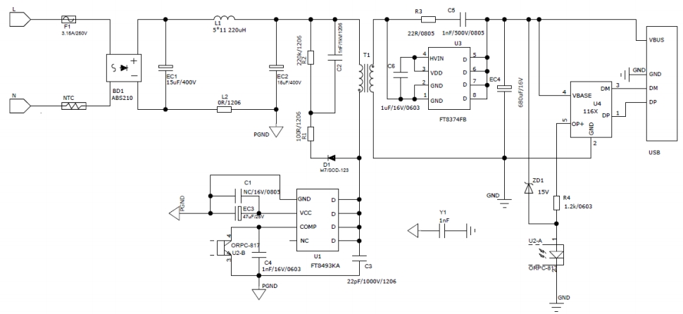 變壓器是充電器的核心部件之一。FT8493KA的變壓器采用EE1811磁芯,初級繞組電感量為1.30mH,漏感量為50uH。這種設計不僅提高了變壓器的效率,還降低了成本。變壓器的制作工藝要求嚴格,包括繞組的排列、絕緣處理以及最后的抽真空浸油和高溫烘干等步驟。這些工藝細節確保了變壓器的性能和可靠性。