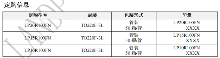 對(duì)于60W的高功率應(yīng)用,LP10R100FN是最佳選擇。其主要參數(shù)如下: