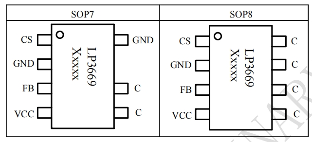 LP3669系列芯片提供了兩種主要的管腳封裝形式:SOP7和SOP8。以下是這兩種封裝形式的詳細介紹: