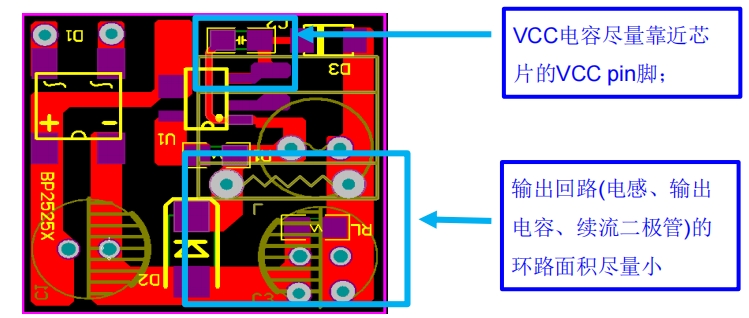 Vout電壓與續流二極管的正向壓降(Vf)和供電二極管的Vf有關,尤其是重載下,續流二極管上的壓降損失較多會導致調整率變差。續流二極管推薦選用GPP工藝、42mil、ES1J超快恢復二極管;Vcc二極管推薦選用M7或A7。