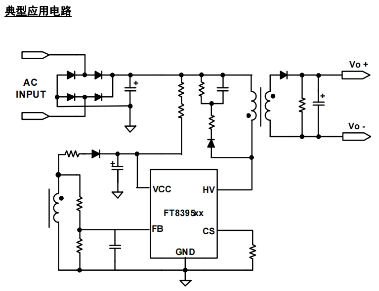 以下是 FT8395KD2 的典型應用電路,適用于 24W 到 30W 的待機電源設計。
