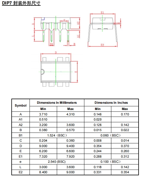 FT8395KD2 采用 DIP-7 封裝,管腳定義如下表所示: