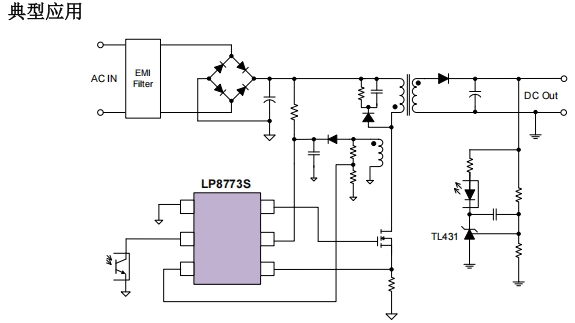 LP8773S特別適用于12V輸出的隔離AC/DC反激變換器,例如: