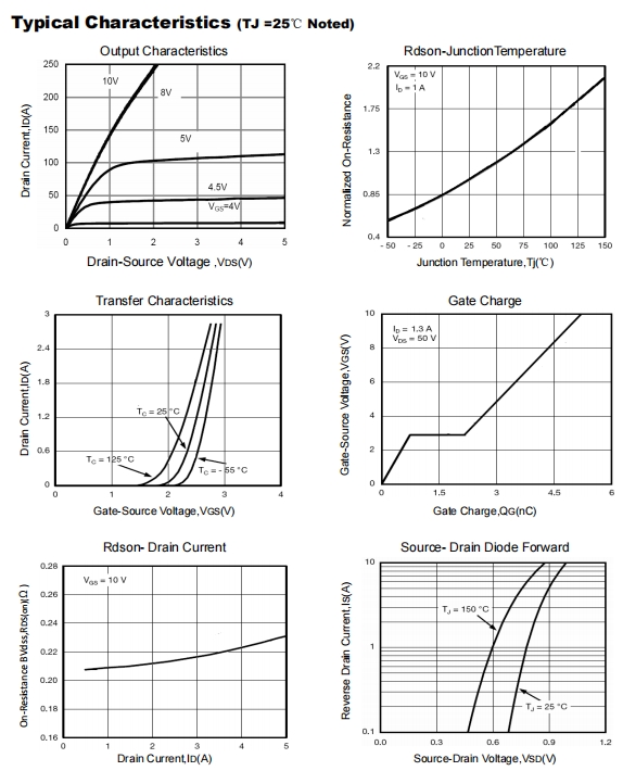 輸出特性:V<sub> ≥ 4.5 V 即可進入“飽和區”,V<sub> < 0.2 V @ 1 A。