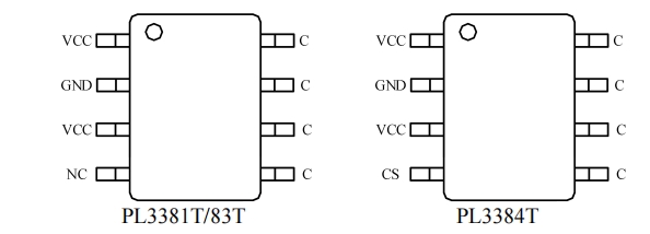 6 腳 CS:在 PL3381T/83T 中直接懸空即可;在 PL3384T 中可外接 0 Ω~0.5 Ω 電阻用于更精細的峰值電流設定。