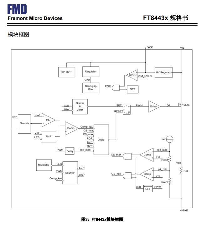 FT8443x采用超高壓工藝,內(nèi)部集成高壓?jiǎn)?dòng)電路,高壓功率開關(guān),以及電流采樣電阻,減少了外部元器件,極大地簡(jiǎn)化了系統(tǒng)應(yīng)用。內(nèi)置的頻率抖動(dòng)和軟驅(qū)動(dòng)設(shè)計(jì)能有效提高EMI性能。